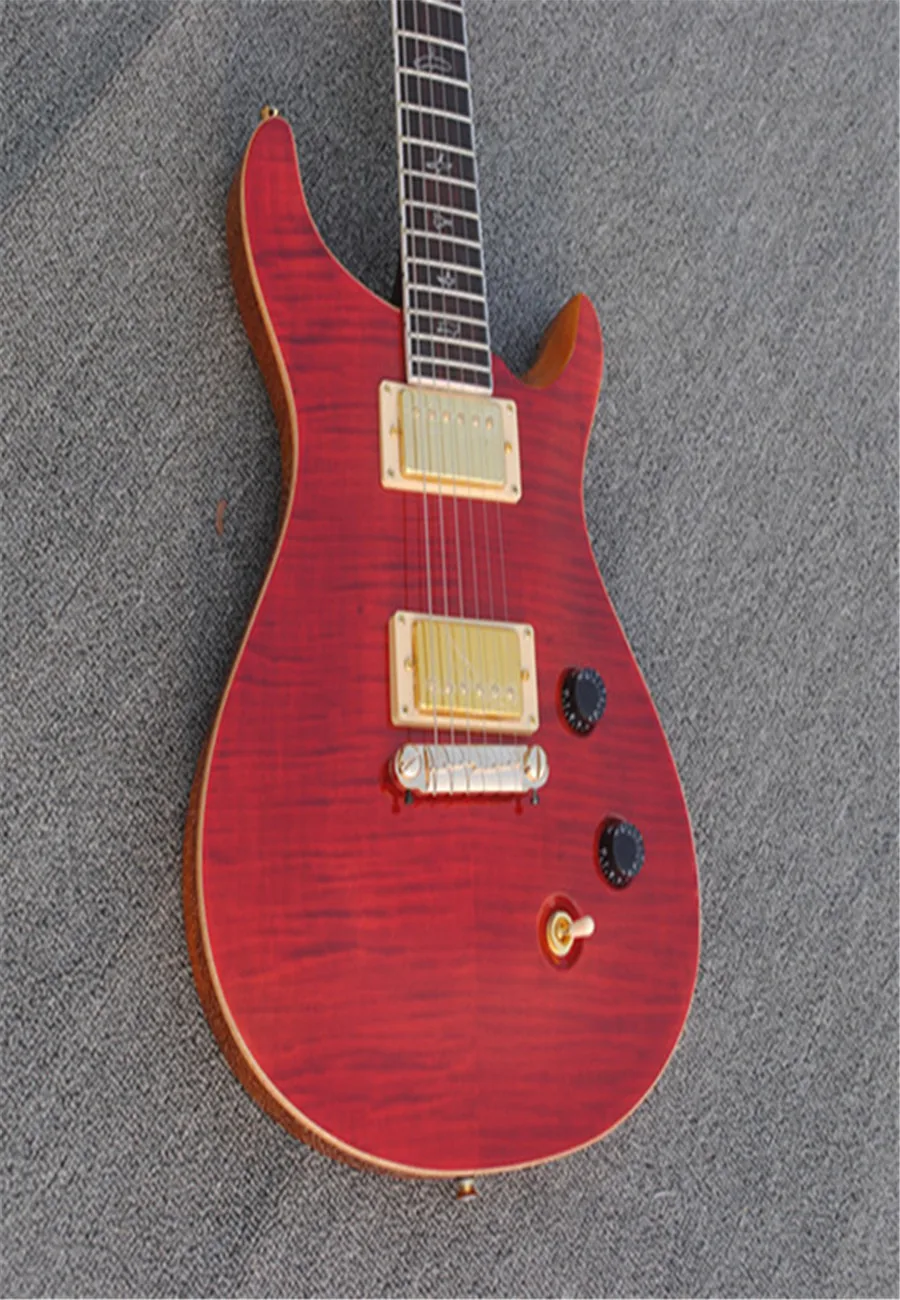 Бесплатная доставка, Высококачественная электрогитара, шпон красного тигра, гриф из палисандра, может быть настроен