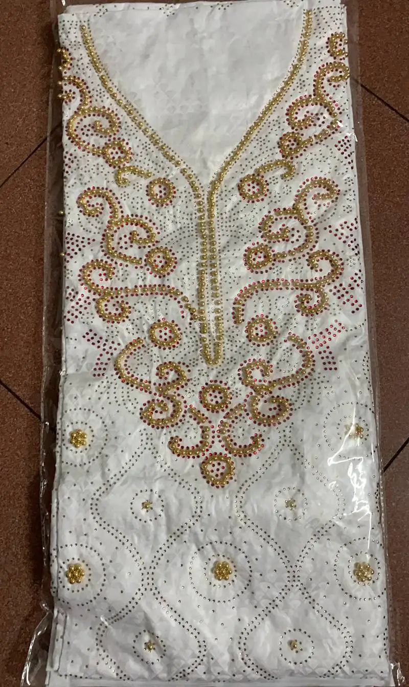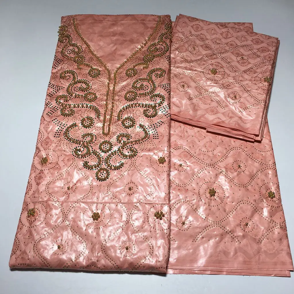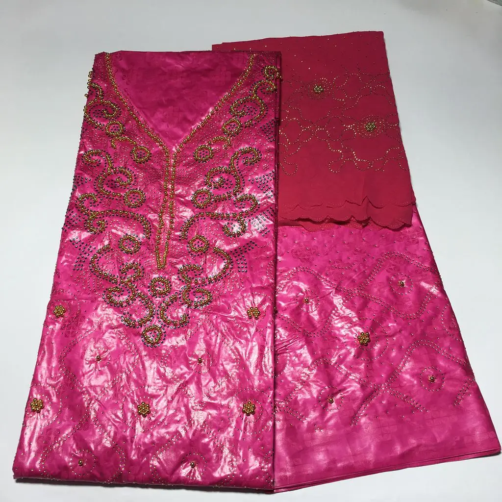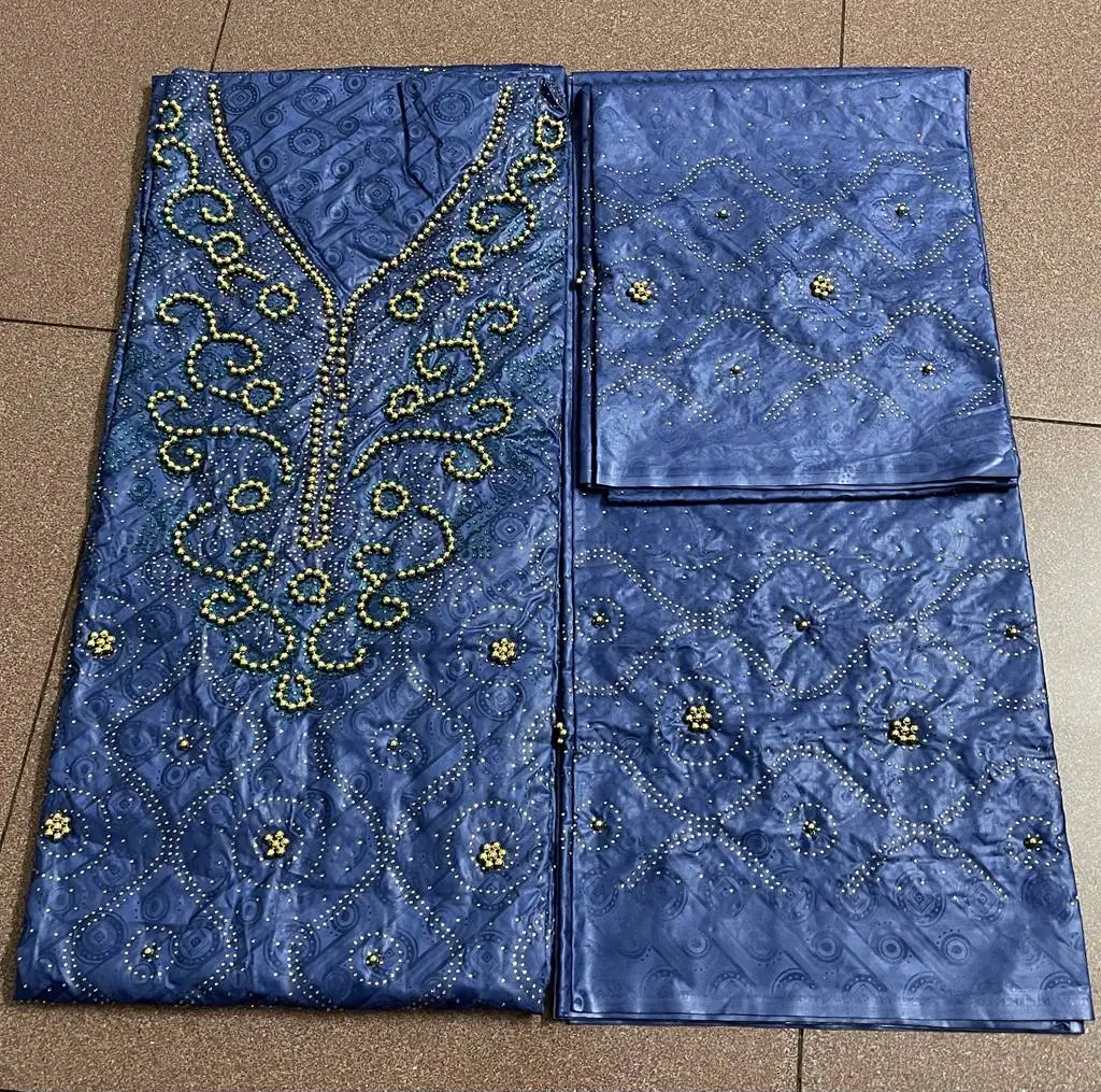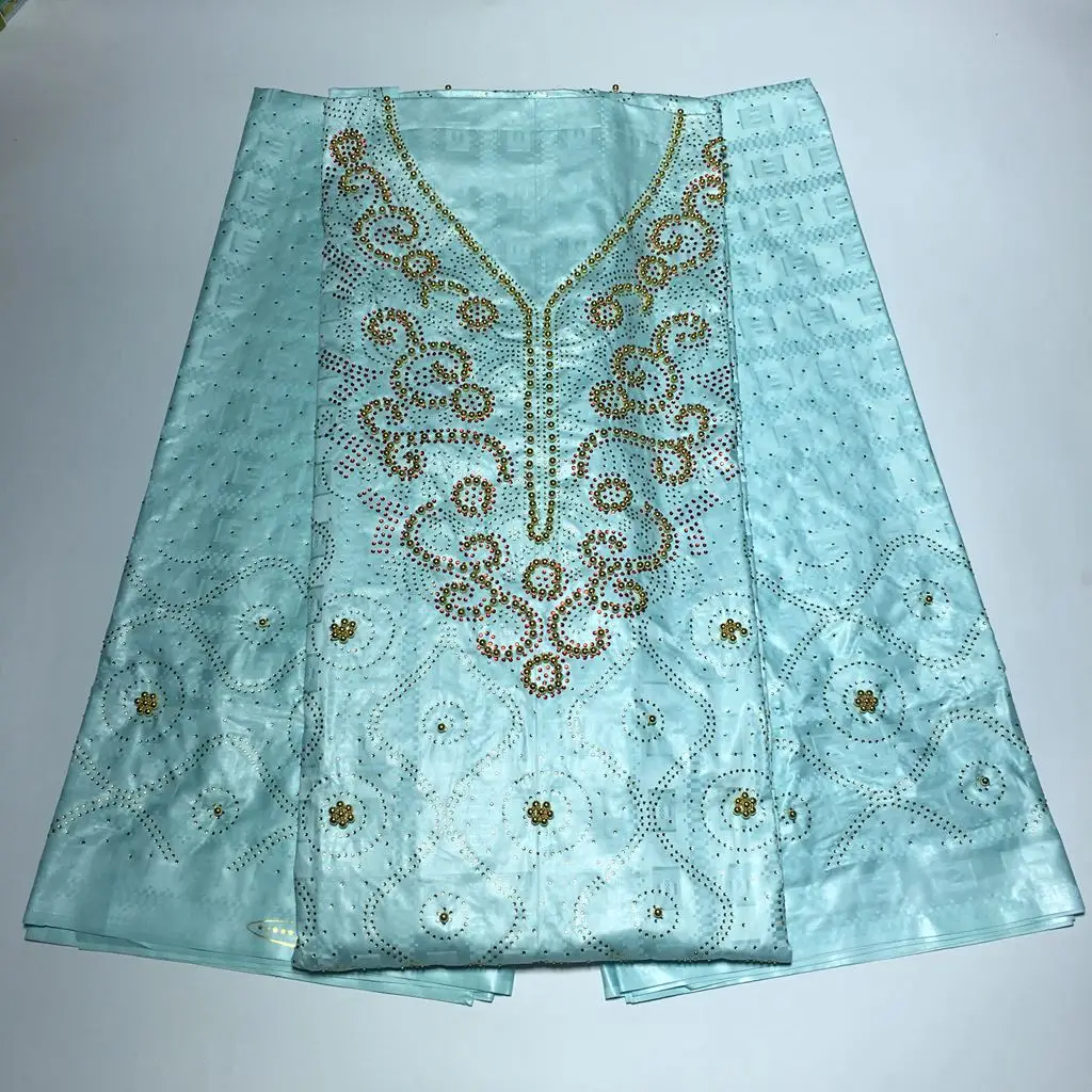 Bazin парча Richer 3 ярдов + 2 ярдов + 2 ярдов камни бусины Морская раковина Одежда Ткань 100% хлопок мягкие материалы для платья
