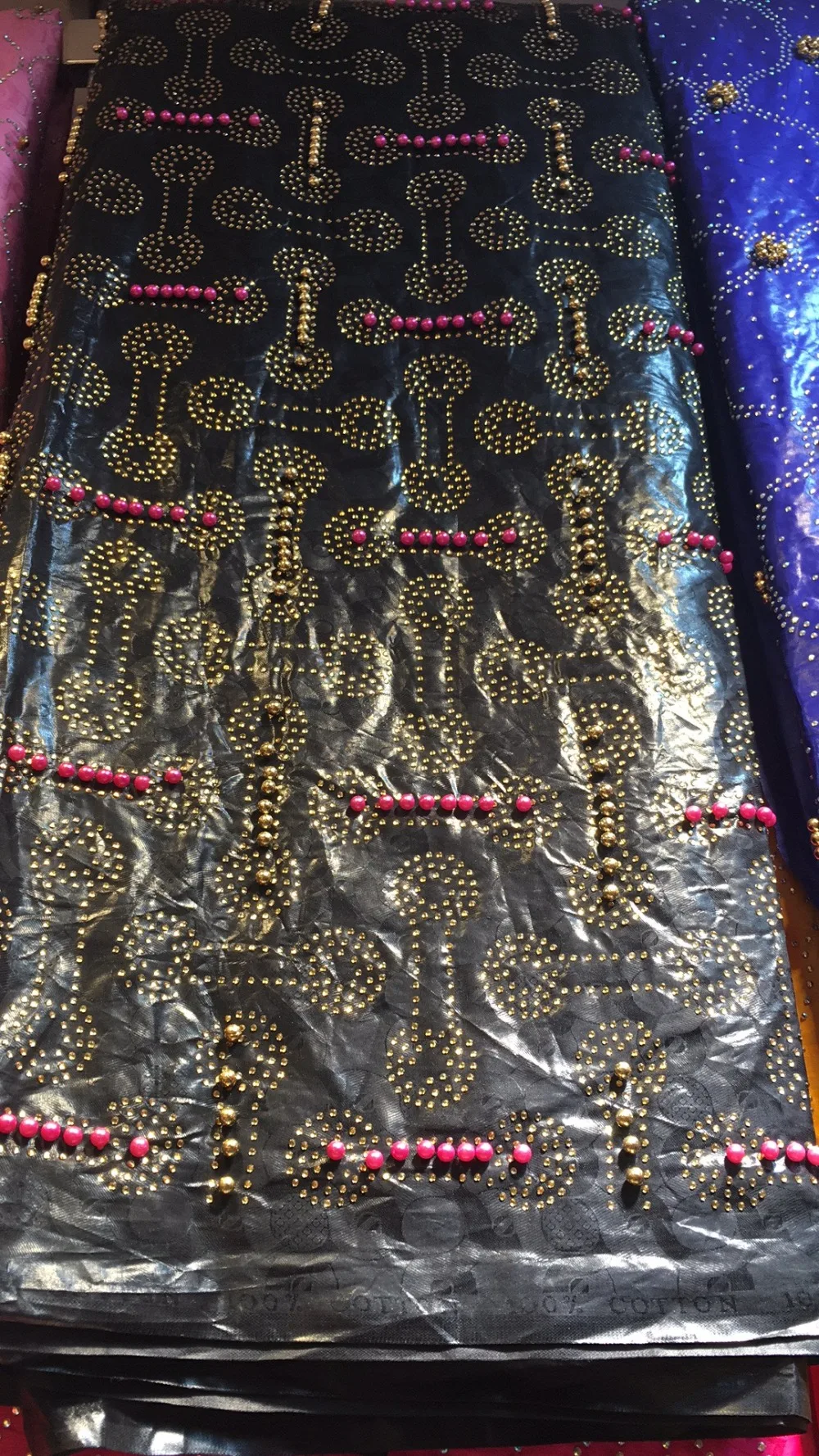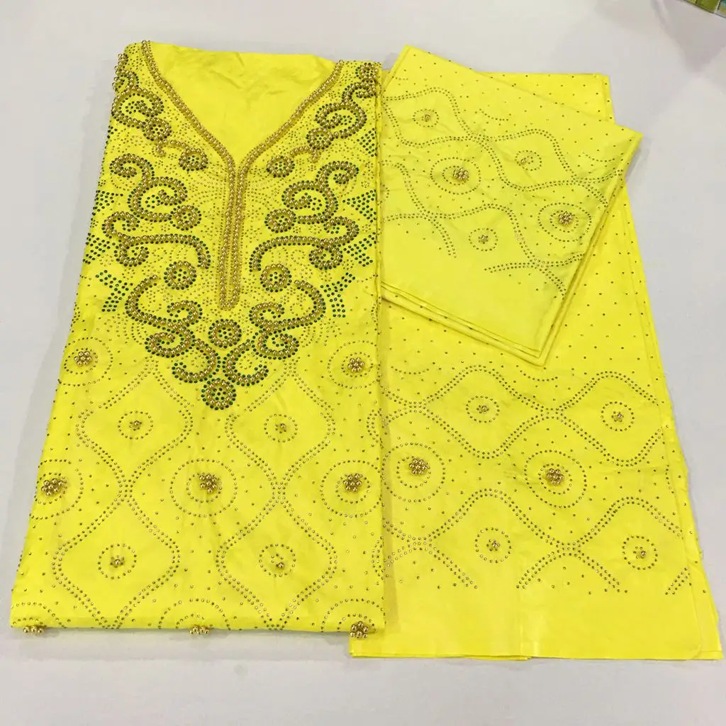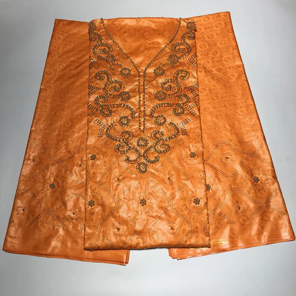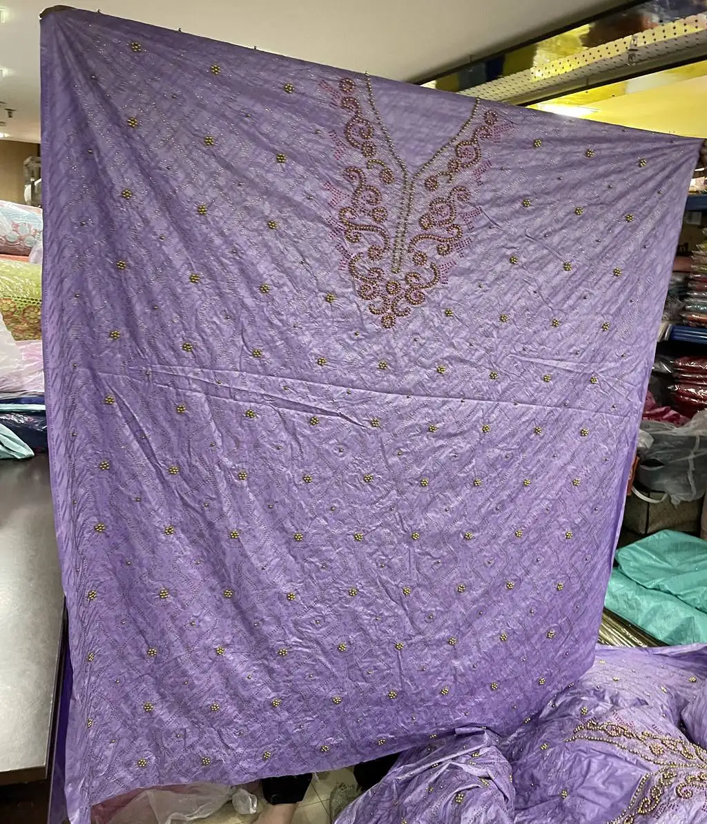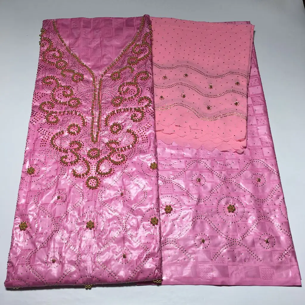 Bazin парча Richer 3 ярдов + 2 ярдов + 2 ярдов камни бусины Морская раковина Одежда Ткань 100% хлопок мягкие материалы для платья