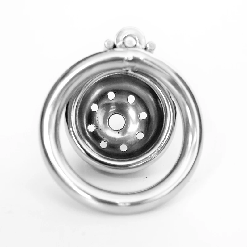 Материал: нержавеющая сталь Размеры: 1. Клетка для петуха полной длины составляет около 40 мм, внутренний диаметр всего 33 мм. 2. Размер кольца на петлях: 40 мм, 45 мм, 50 мм, можно выбрать 3. Вес: 130 г