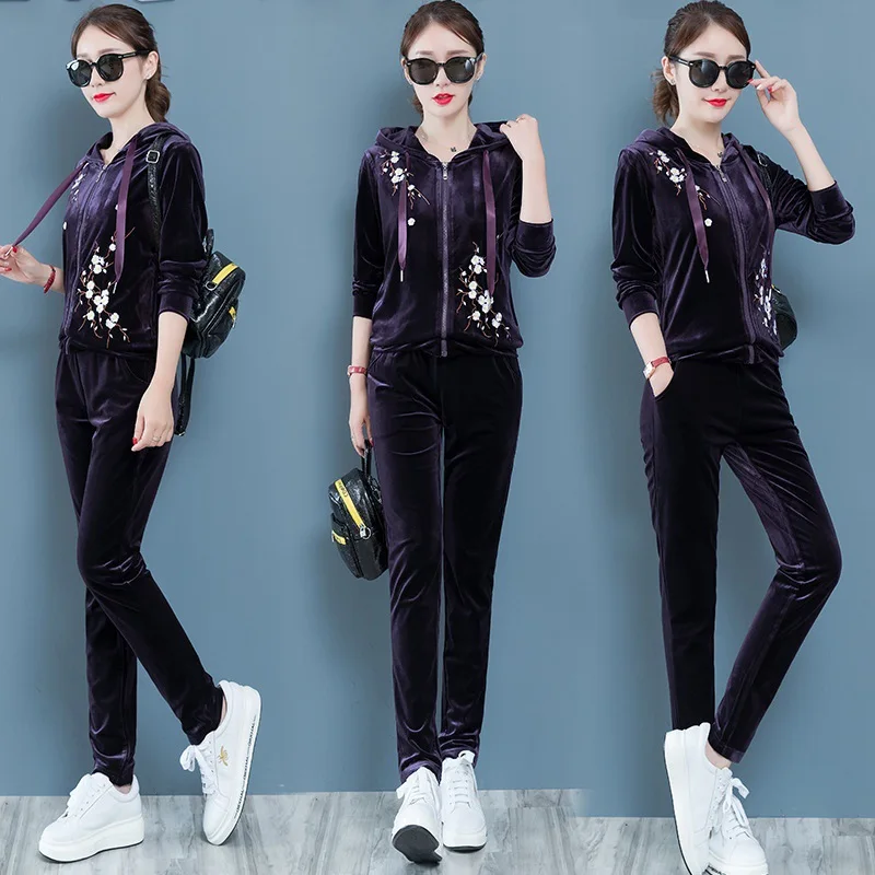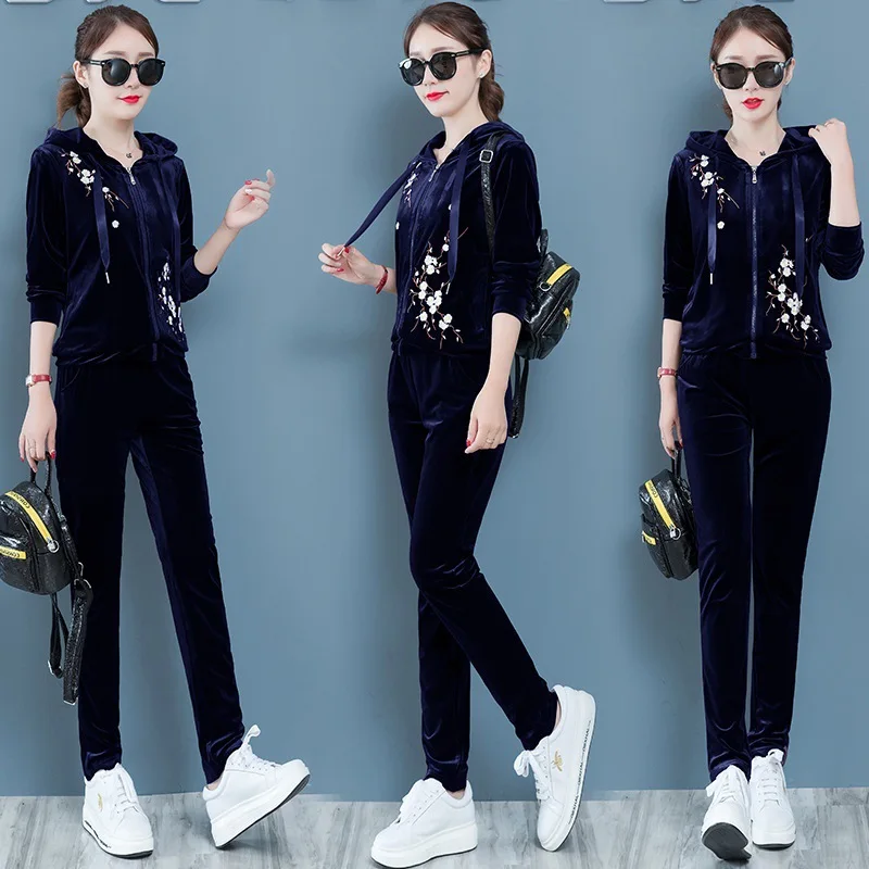 2019 Весна Женский комплект из двух предметов костюмы велюровый спортивный костюм толстовки топ и брюки костюм комплект бархатные спортивные костюмы спортивный костюм женская одежда