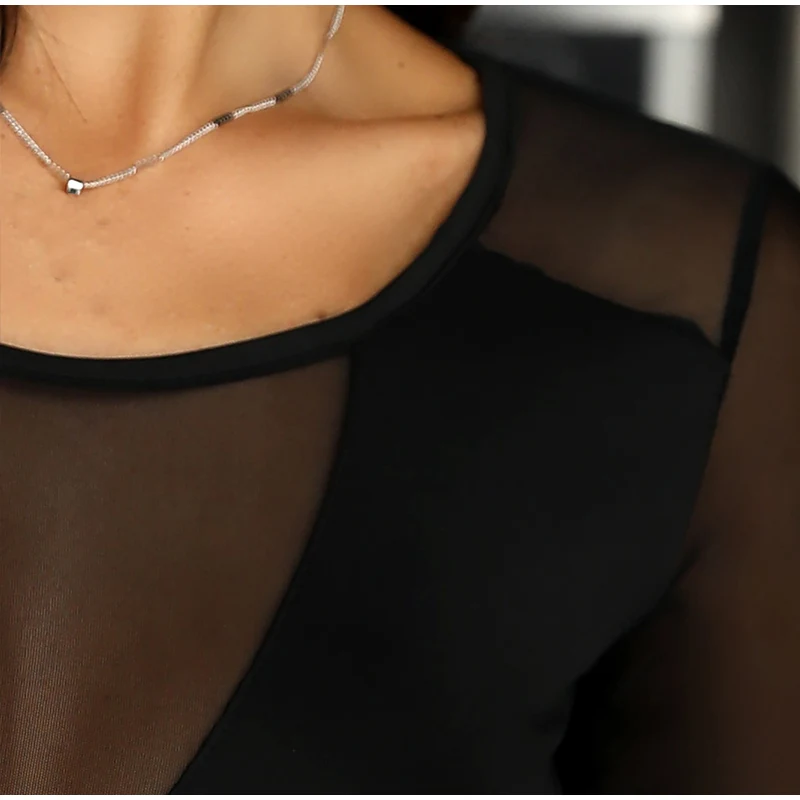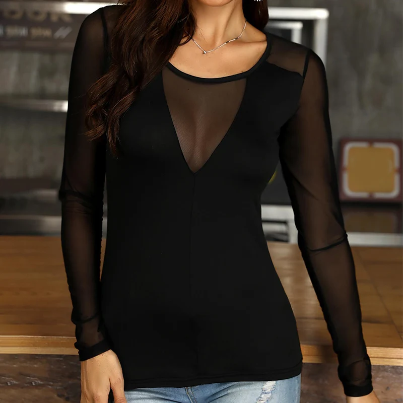 Женская Прозрачная Сексуальная Блузка с v-образным вырезом и длинным рукавом, Лоскутная черная сетчатая женская блузка, новинка 2020, Летние повседневные женские блузки