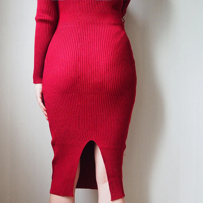 Облегающее трикотажное платье, весна 2018, новое модное платье-карандаш с длинным рукавом, женское платье на одной пуговице, тонкое Повседневное платье миди, красное, черное