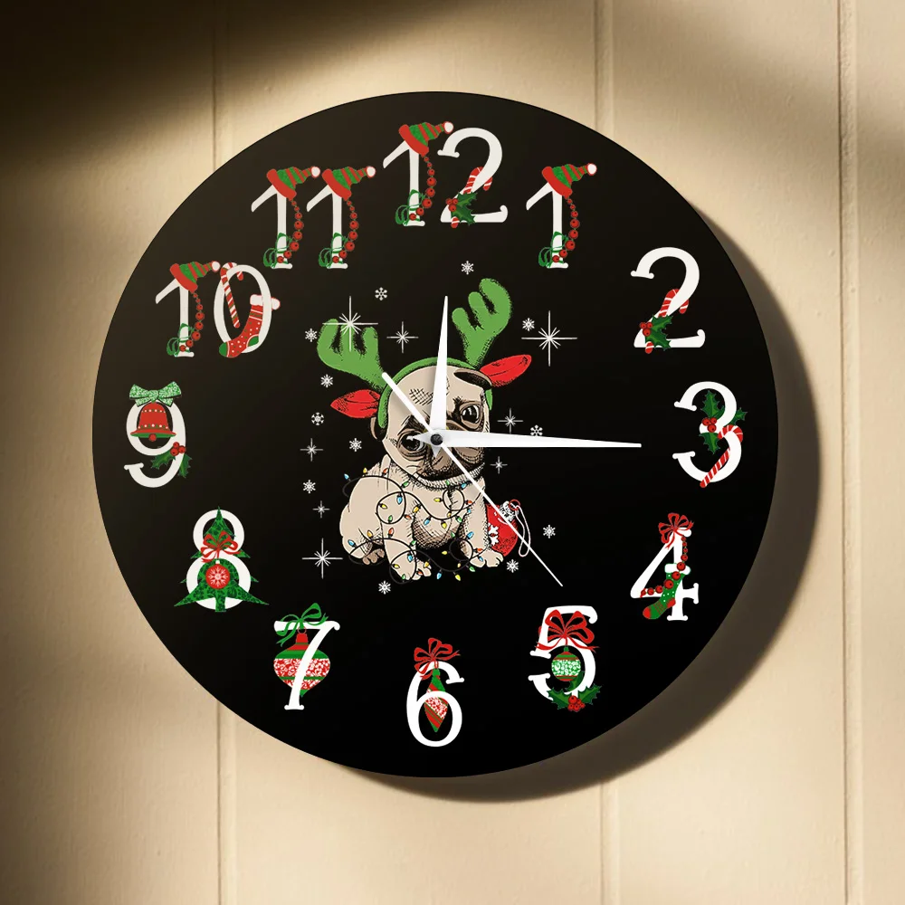 Мопс Рождество настенные часы