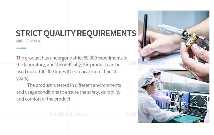 Строгие требования к качеству Данные о грубом шаге Товар прошел строгие 50000 аппаратура для использования в лаборатории, и функционально используемый, изделие может использоваться до 100000 раза (теоретический более чем для детей 10 лет). Продукт тестируется в различных средах и условиях использования для обеспечения безопасности, долговечности и комфорта продукта.