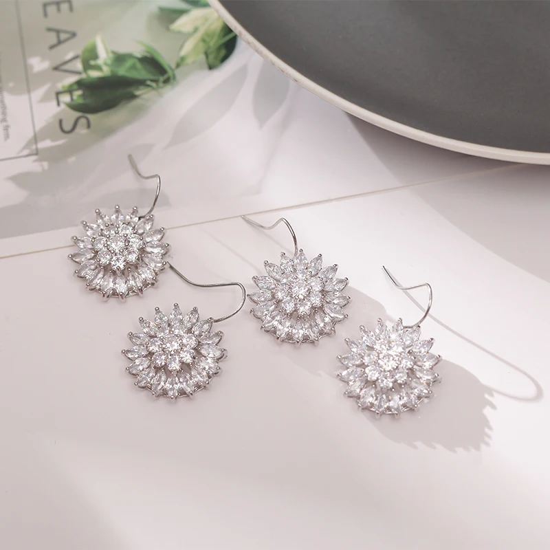 ZI.SEN Fashion New Dangle Earrings Rhinestone Round For Women Handmade Simple Gift Silver Color Crystal Long Drop Earring