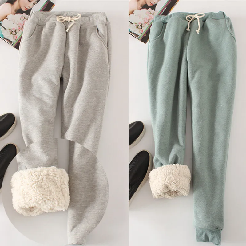 Женские брюки большого размера, зимние толстые штаны со шнуровкой, свободные хлопковые шаровары большого размера
