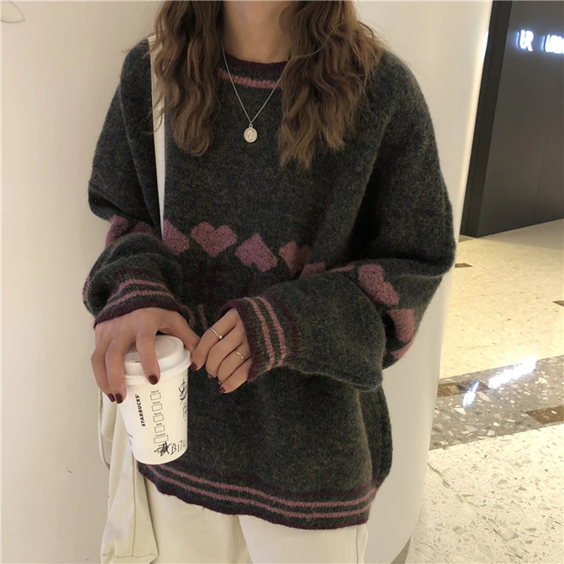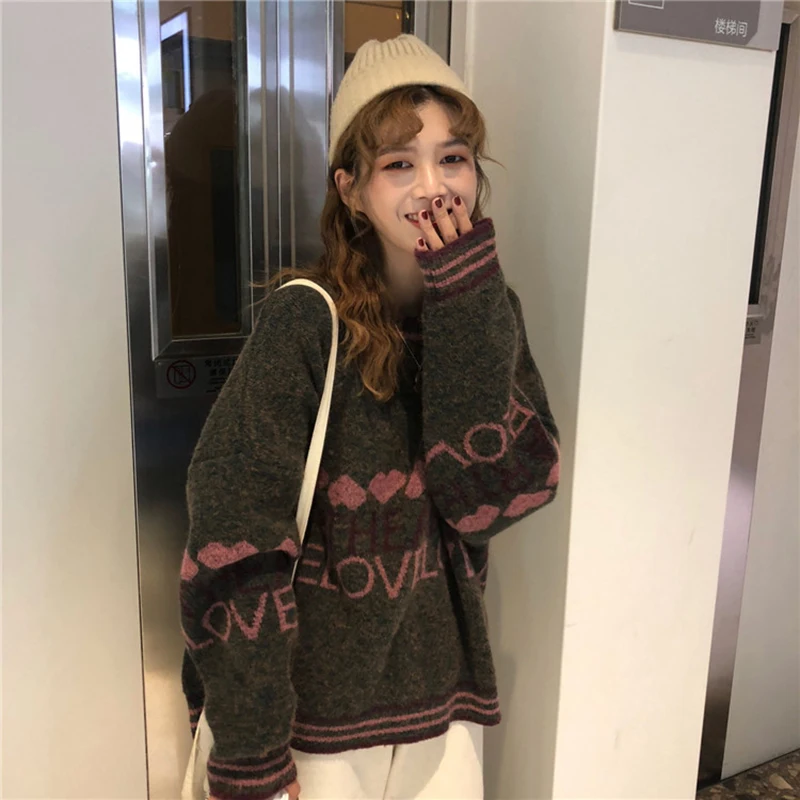 Осенне-зимний женский свитер, корейский модный вязаный свитер с длинными рукавами, пуловеры, рождественские свитера с принтом сердца и буквы