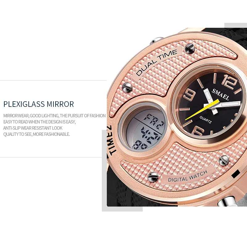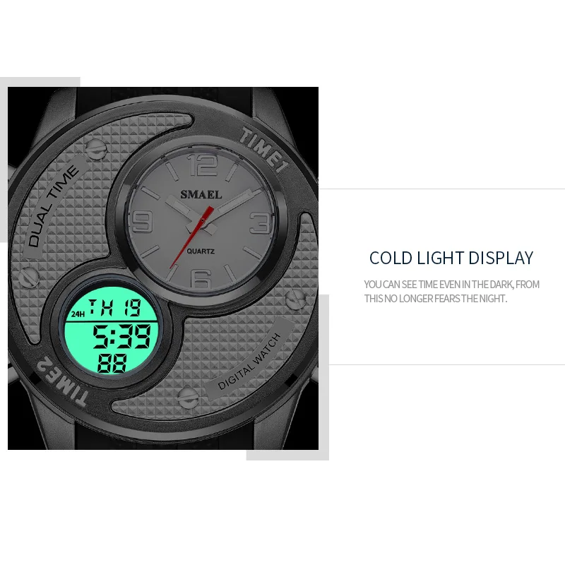 Мужские часы, водонепроницаемые, SMAEL, спортивные часы с двойным дисплеем, relogio masculino, розовое золото, часы для мужчин, 1199, мужские наручные часы, силиконовые