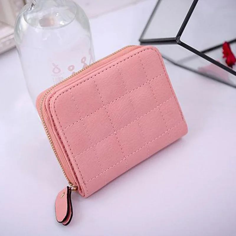 Женские кошельки и кошельки из искусственной кожи, короткий кошелек, Женский держатель для карт, сумка для денег, клетчатые кошельки на молнии, маленькое отделение для монет, кошелек
