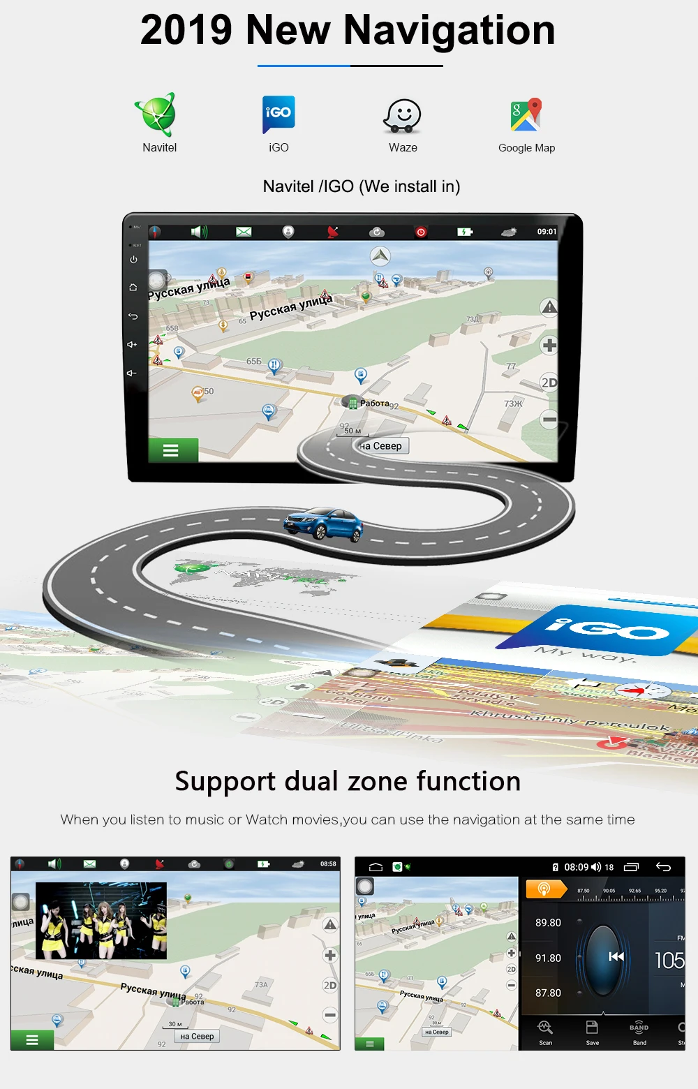 Отличные новости: обновленная модель android 9,0 DSP на радиочип 6686! Поддержка 4G со слотом для sim-карты. Встроенный DSP,32 полосы регулировки. Разделите экран, запустите 2 приложения на экране бок о бок.