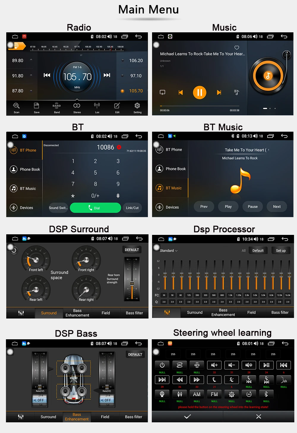 Оснащен мощным DSP + Hi-Fi чипом, TDA7851 4*50 Вт усилитель, может изменить звук с окружающей среды. Наслаждайтесь музыкой с dsp,