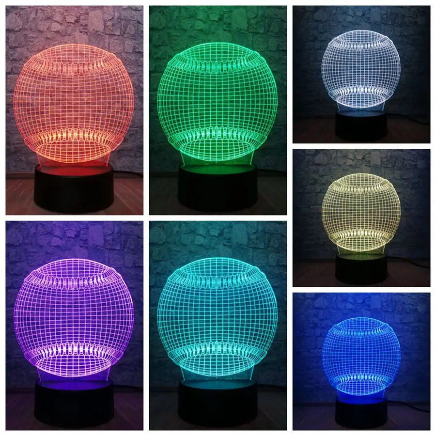 Новый бейсбольный 3D ночной Светильник, спортивный светильник ing USB, 7 цветов, светодиодный сенсорный Настольный светильник, детские игрушки, лампы для мальчиков, домашний декор