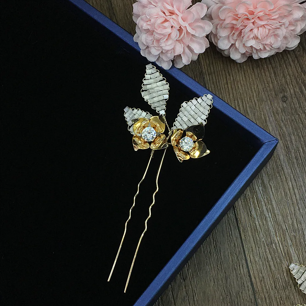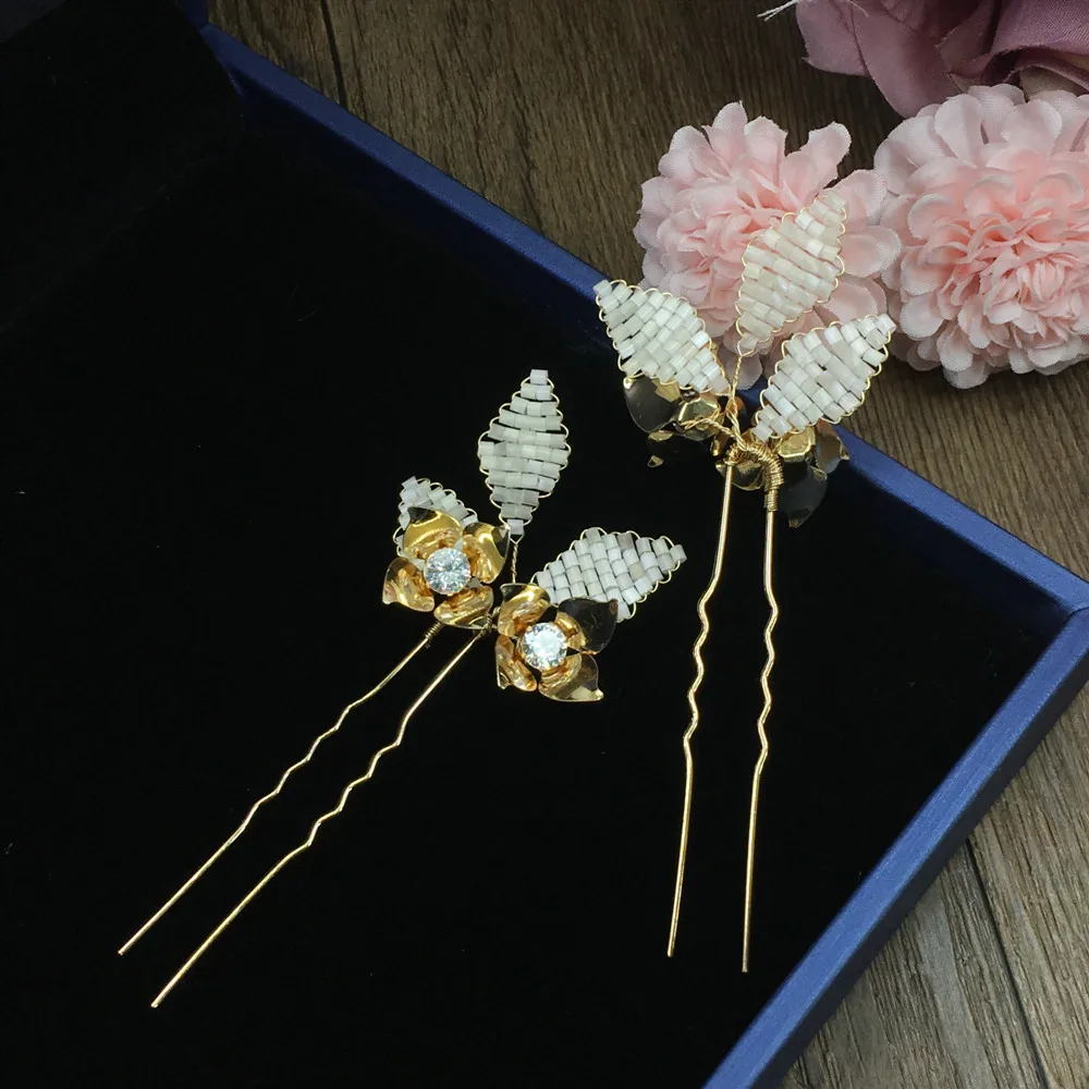 2pc/lot Retro Baroque Gold Hair Pin Ornaments Handmade Copper Zircon Bridal Hair Pins Wedding Hair Accessories Pince Cheveux Femme Bijoux Women Headpiece Jewelry WIGO1345