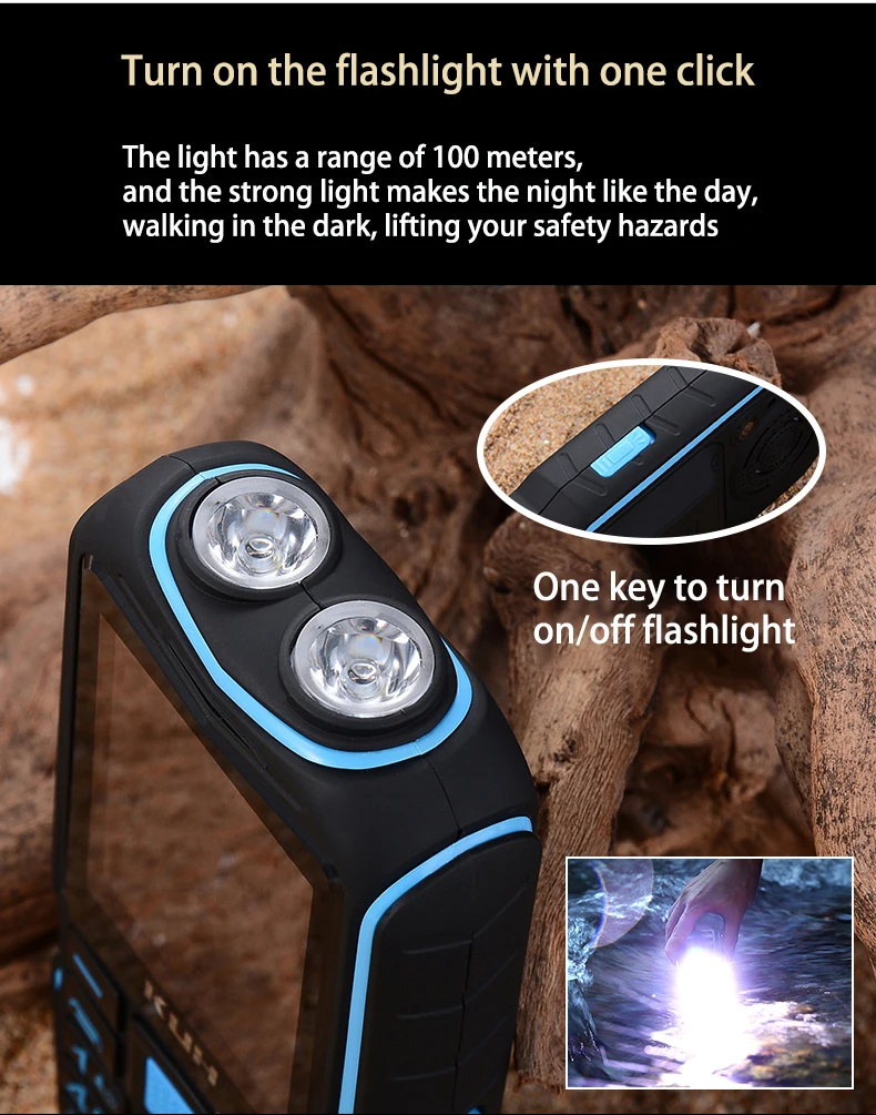 Функции: FM радио/Мощность банк/Водонепроницаемый противоударный пылезащитный/двойной вспышки светильник Быстрый набор, MP3,MP4, время работы в режиме ожидания: около 150 дней! |