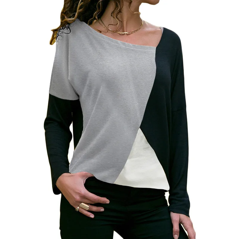 Модные цвет блока лоскутное для женщин блузки для малышек Весна повседневное с длинным рукавом косой воротник Женский Рубашки мальч