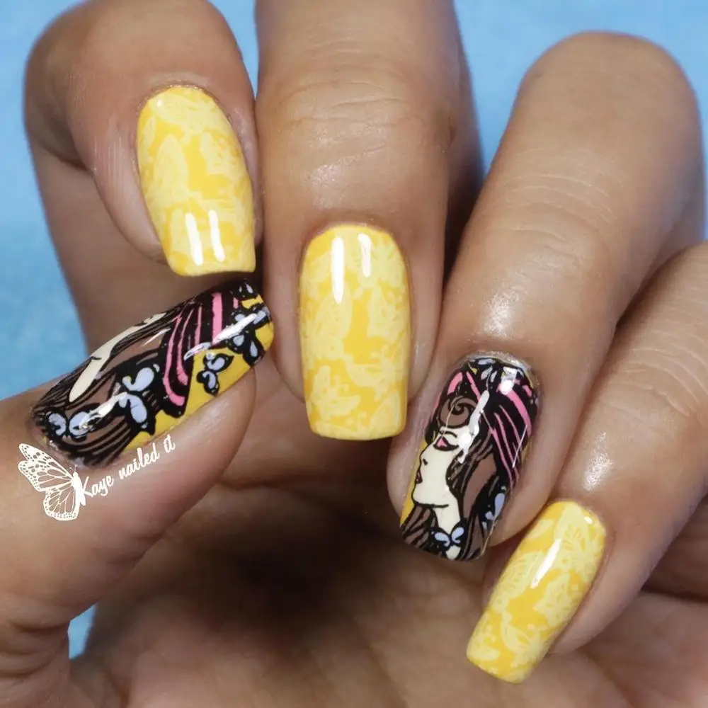 2. Нанесите лак для ногтей на желаемое изображение в пластине. (Рекомендуется: Используйте однотонный лак для ногтей, чтобы текстура была толще, чем другие лаки для ногтей)