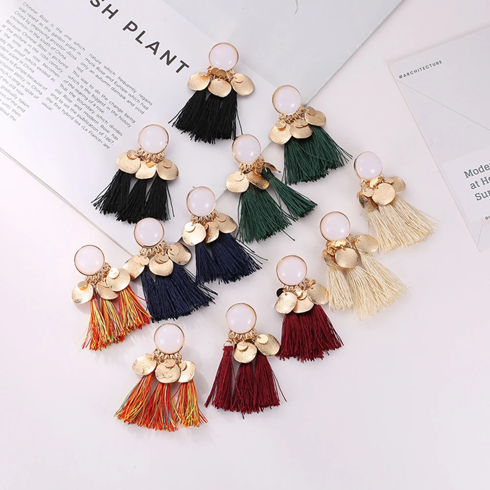 Европа и США горячие серьги кисточкой короткие сплава смолы серьги в богемном стиле модные популярные Разноцветные серьги