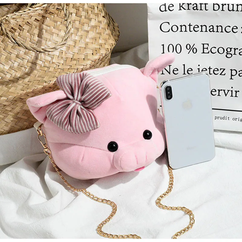 Moeluohouse форма свиньи Плечо Сумка Через Плечо Женская Девушка с цепочкой, на молнии розовый бант плюшевые куклы корейский стиль каваи подарок
