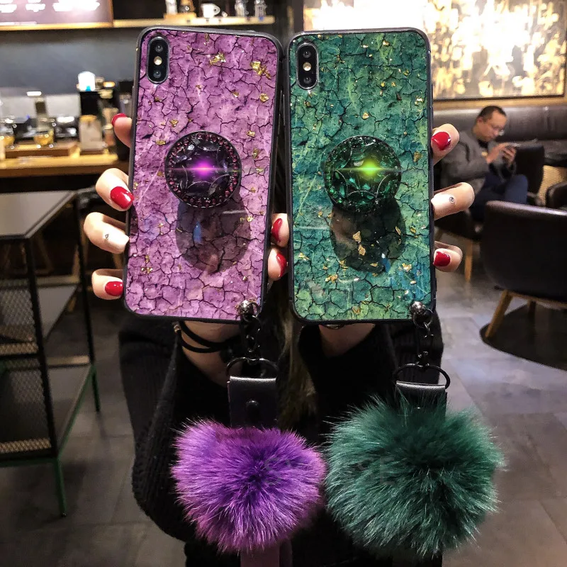 Note : Full name please! Especially for Russians and Latvias, if not,you will not get your surprise. SYCASE Luxury Epoxy Fashion Green Purple phone case For Samsung S8/S8Plus/S9/S9Plus/Note8/Note9 case Rhinestone Stand Hair Ball Soft Cover