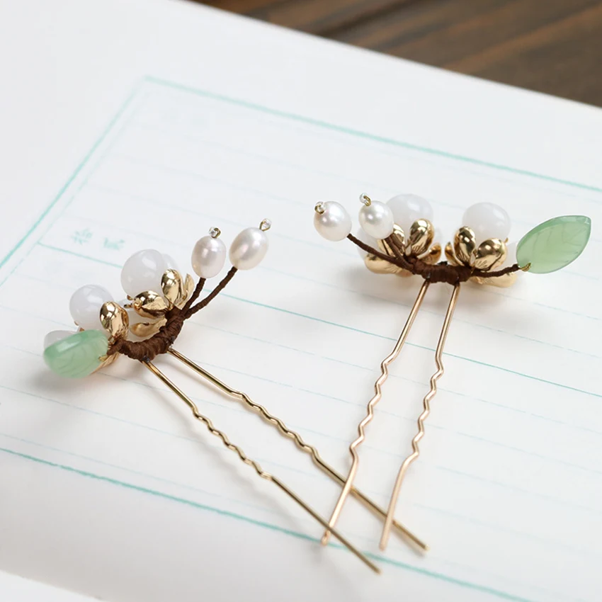 2 шт./лот ручная работа; пресноводный жемчуг, медный цветок, заколка для волос в винтажном китайском стиле, заколка в стиле ретро, свадебный головной убор, Женские Ювелирные изделия, винтажные свадебные аксессуары для волос, Pince Cheveux Femme WIGO1359