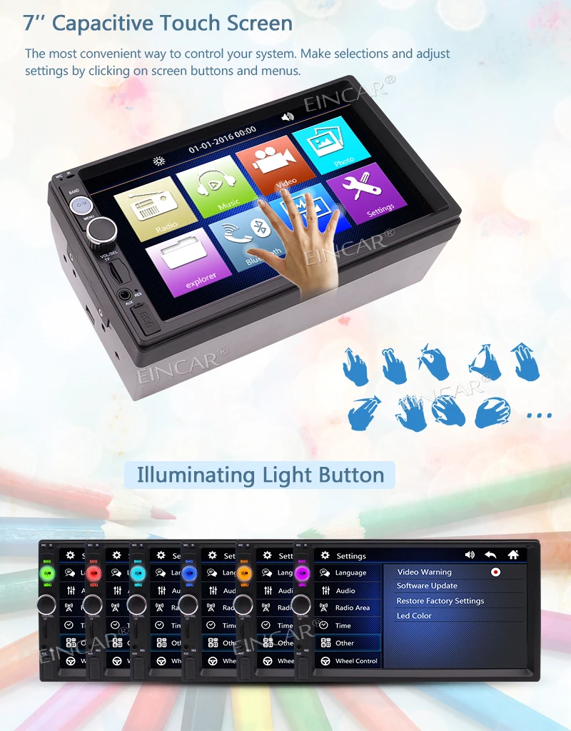 -- Это мультимедийный автомобильный аудио видео плеер обладает функцией Мути, 7-дюймовая емкостном сенсорном экране.