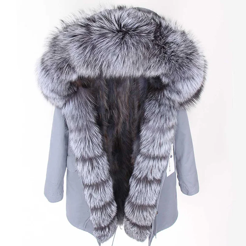 Воротник из натурального меха лисы и застежка спереди + подкладка из меха лисы