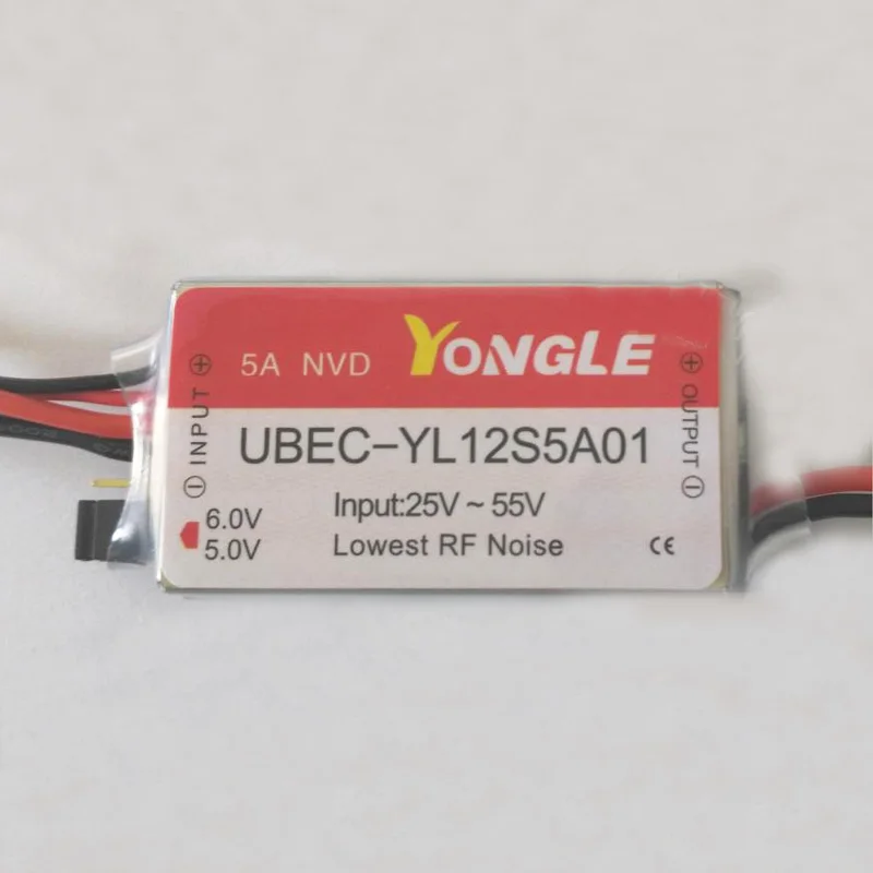 UBEC-YL12S5A-это импульсный источник питания типа UBEC с непрерывным выходным током 5А (макс. = 10А). Принимающая ток с высокой пропускной способностью, понижающий DC-DC переключатель IC дизайн, маленький размер, светильник вес, большой выходной мощностью; Для плоских кабелей, закрытого магнитного типа силовой индуктор и магнитное кольцо седла, чтобы избежать электромагнитных помех; Также увеличенная функция отображения заряда батареи отслеживает мощность аккумулятора во время полета, чтобы избежать значительных потерь из-за недостаточной мощности аккумулятора и устранения необходимости добавления другого оборудования для мониторинга батареи.