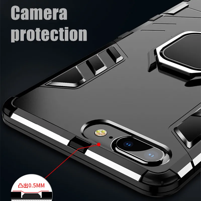 Роскошный чехол-Броня с кольцом для iPhone 7, чехол для iPhone 6 6S 8 Plus 5 5S, Мягкий противоударный чехол с силиконовым краем для задней панели ПК