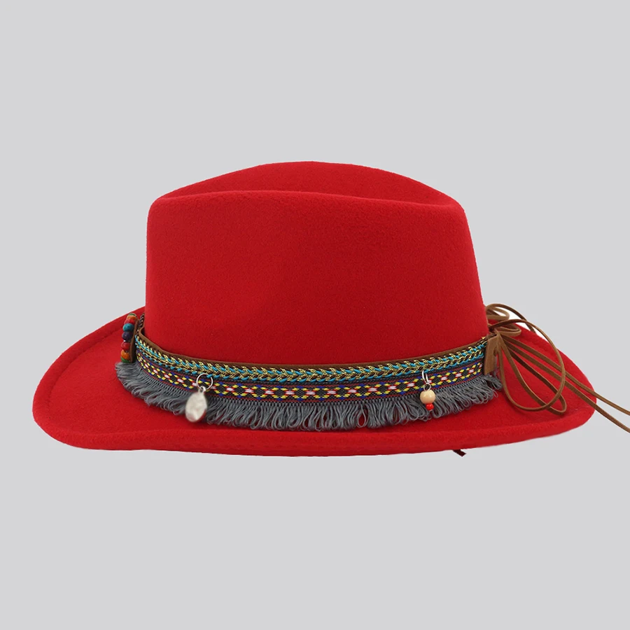 Шляпа Fedora Bohemia с кисточками для женщин, Шляпа Fedora Cowboy Fedora, черная фетровая шляпа, мужские шерстяные винтажные шляпы для котелок, шляпы для церкви WH713