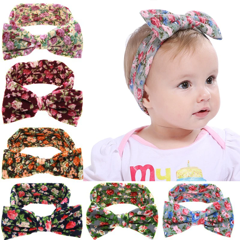 Модные детские повязки на голову, тюрбан, бандана, повязка для волос для девочек с цветочным принтом, повязка на голову с большим бантом, повязка на голову из хлопка, аксессуары для волос для малышей