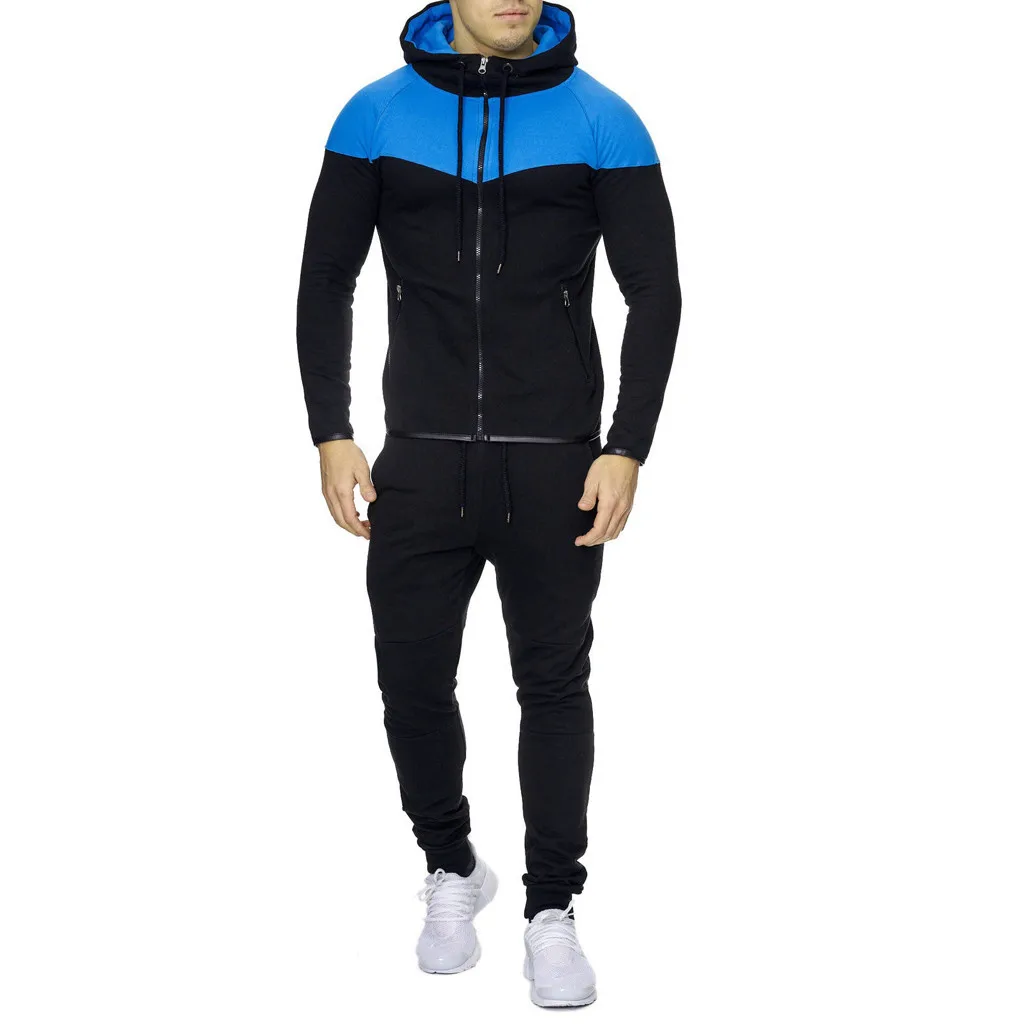 Модные мужские осень зима Packwork окончил Тонкий с длинным рукавом Толстовка Топ Блузка