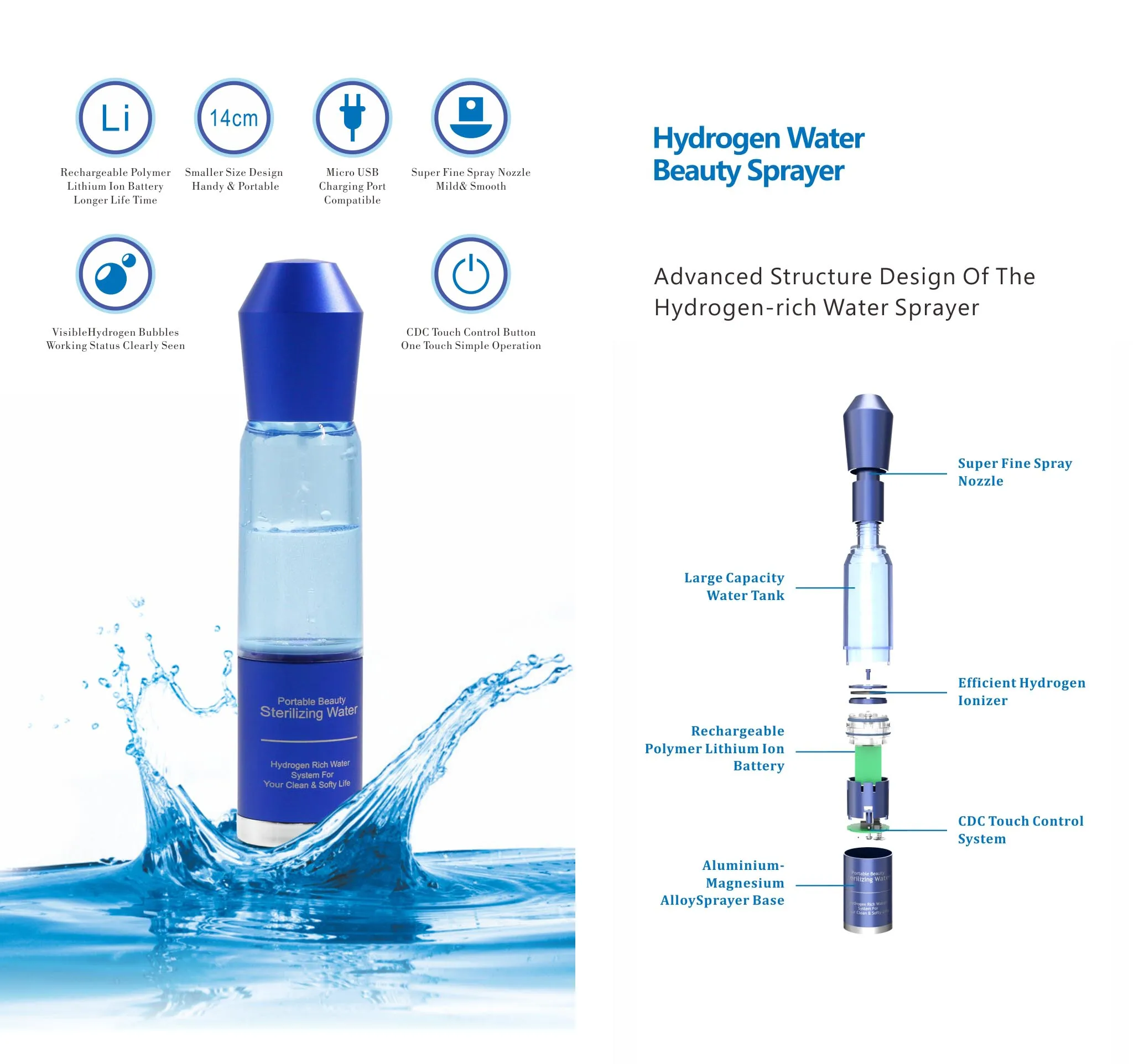 [Увлажнение и Анти-аллергия]: нано-водородный распылитель воды, производство богатой водородой воды, известная природой, обеспечивает лучший антиоксидант, антивозрастной свойства, сужение пор, увлажнение, И против акне, и обладает сильным противовоспалительным свойством.