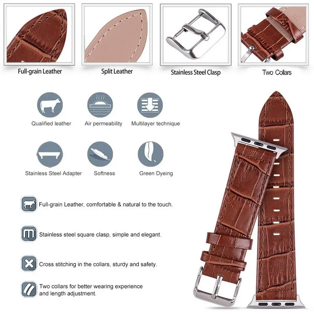 Усовершенствованные Адаптеры обеспечивают более надежное соединение между кожаным ремешком и apple watches. Не такие, как оригинальные адаптеры apple, где винты необходимо затягивать так часто, чтобы ленты не отвалились.