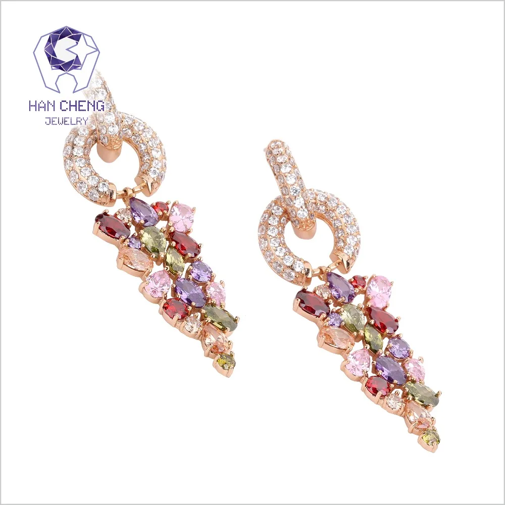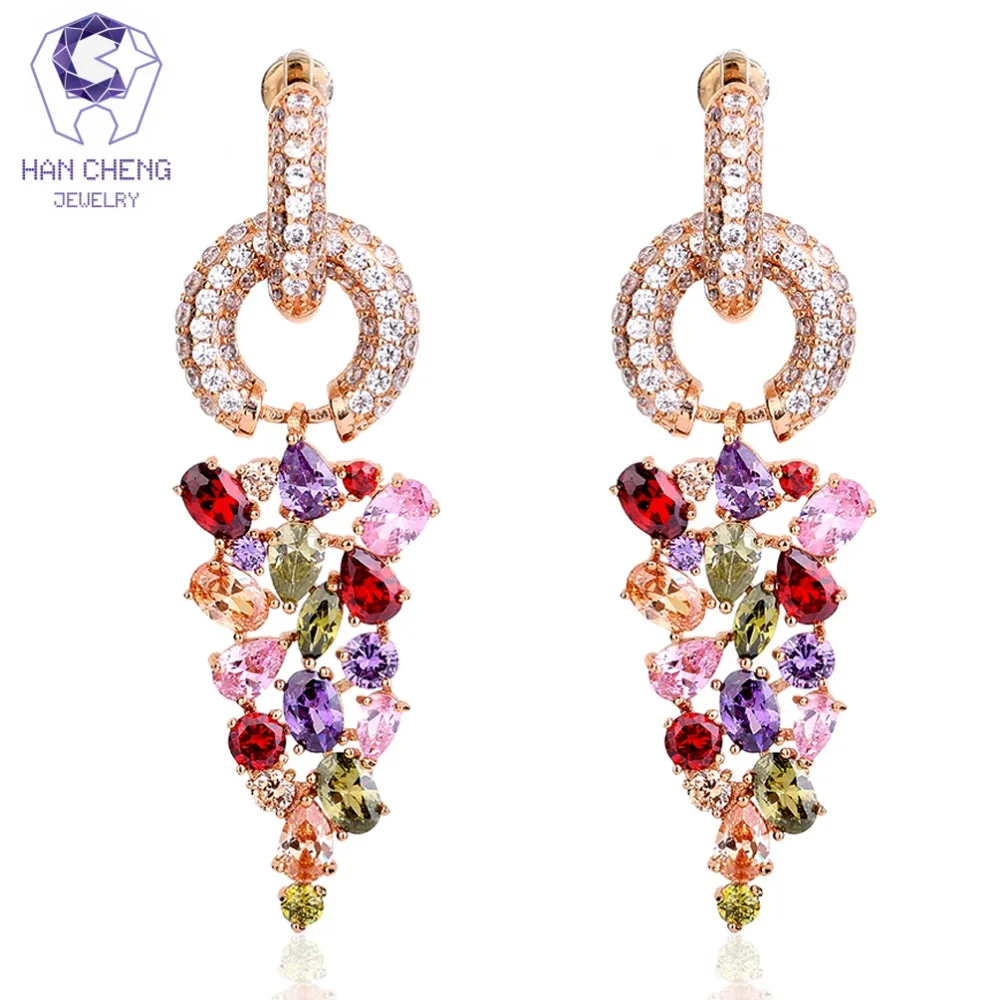 HanCheng новые модные роскошные полые золотые Висячие висячие серьги с цирконием, висячие серьги для женщин, массивные украшения, бижутерия