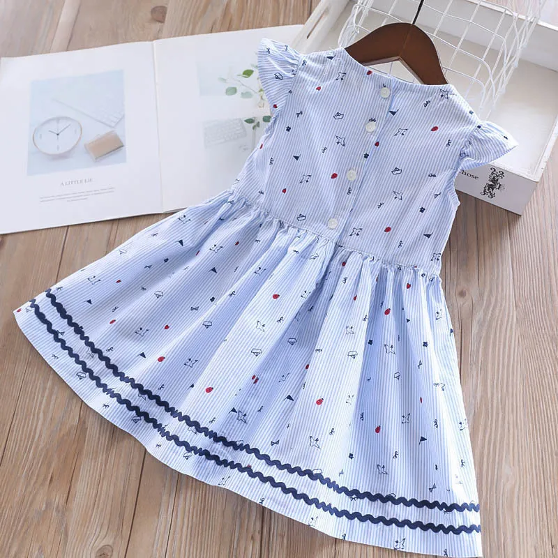 Платье для девочек; Летние модные хлопковые детские Платья с цветочным принтом; Одежда для девочек; Детские школьные Вечерние платья на день рождения | ||