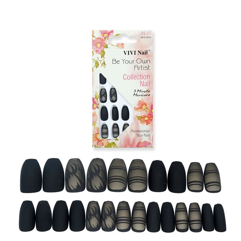 24 шт черные противопожарные полоски накладные ногти балерины поддельные ногти с клеем предварительно дизайн полный ногти Советы искусственный маникюр инструменты для красоты