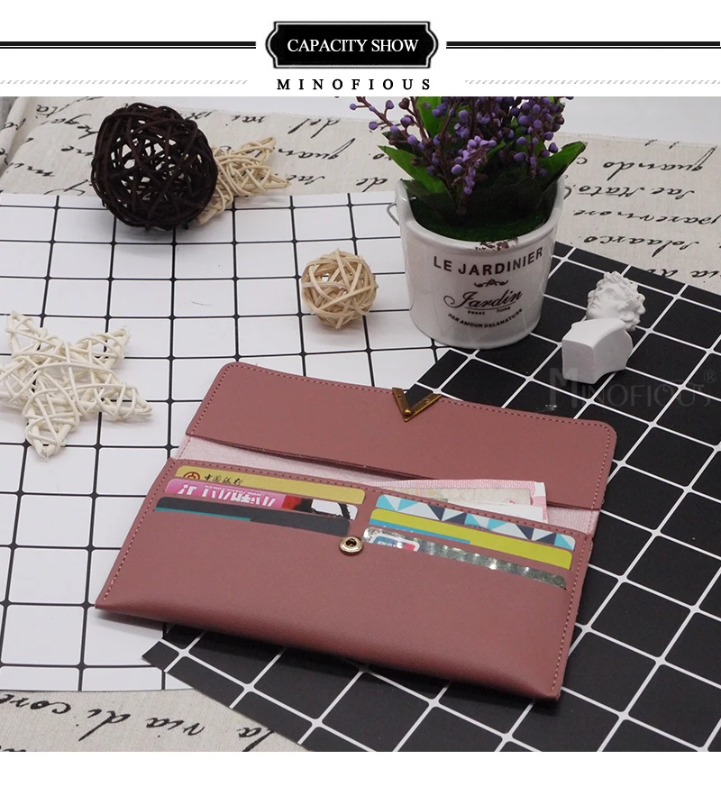 Поверьте, мы даем вам наши лучшие цены с лучшим обслуживанием. Надеюсь, вы будете иметь счастливые покупки в нашем магазине. По любым вопросам, пожалуйста, свяжитесь с нами. Внимание :) 1. Пожалуйста, учитывайте разницу в 1-3 см из-за ручного измерения, спасибо. 2. Из-за различий в настройках экрана компьютера или по другим причинам может быть небольшая разница в цвете, но мы гарантируем, что стиль такой же, как показано на фотографиях. Спасибо за понимание. Сведения об изделии :) Бренд: MINOFIOUS Материал: из искусственной кожи Размеры: 18*1,5*9,5 см (Д * Ш * В) Вес: 0,16 кг Пол: Для женщин Цвет: черный, фиолетовый, серый, красное вино, коричневый Посылка: 1 кошелек Особенности :) 1. Большая емкость с многослойной структурой для денег, карт и других предметов. Этот кошелек легкий, тонкий и изысканный, вы можете легко носить его с собой или положить в сумку. О деталях, пожалуйста, обратитесь к фотографии продукта, как показано ниже. Спасибо за понимание.
