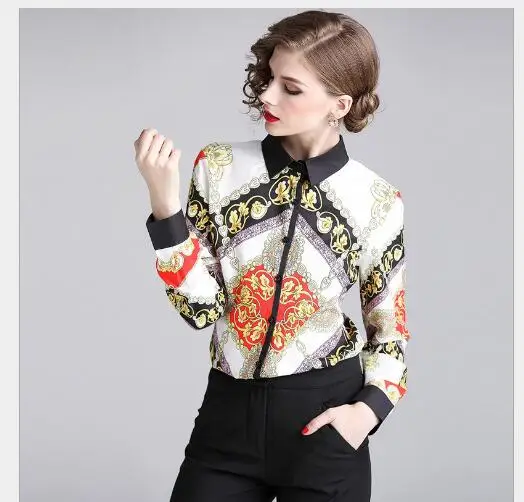 Для женщин блузки для малышек 2019 Новинка весны отложным воротником подпушка воротник с длинным рукавом база блузки с принтами женская верхняя одежда