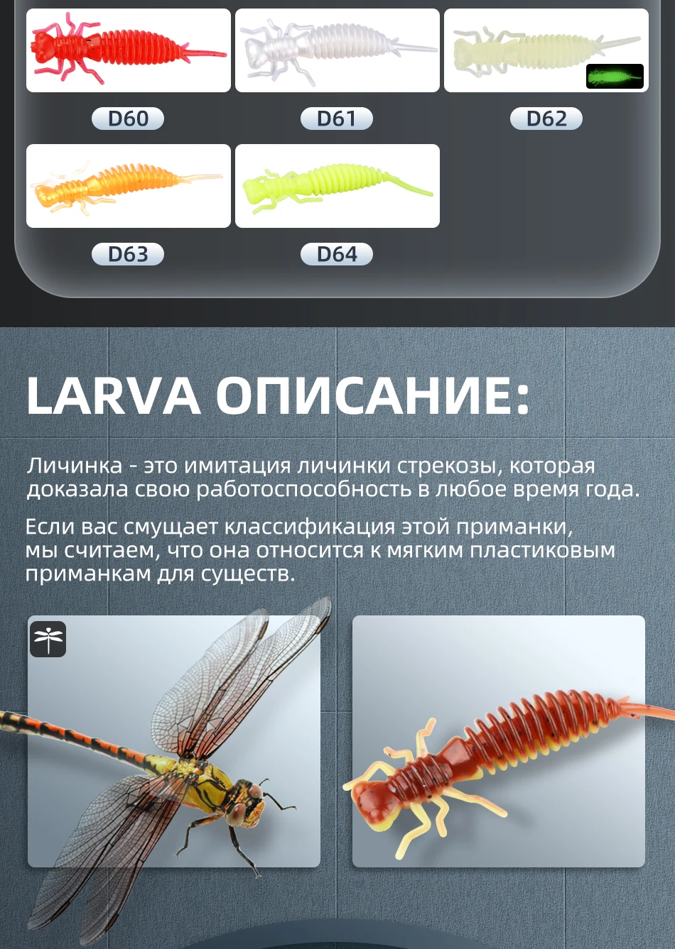 Личинка-это имитация личинки стрекозы, которая зарекомендовала себя на протяжении всех сезонов.