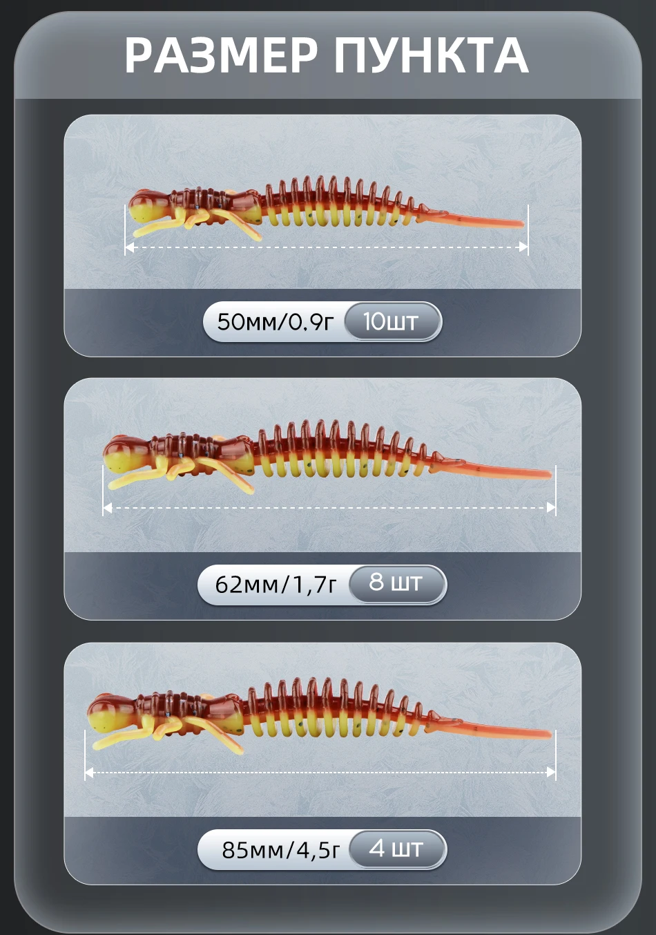 Елена: Заказывала их для мужа. У него они как расходный материал, теряет во время ловли или еще чего нить с ними случается. Сами приманки легкие, весом...