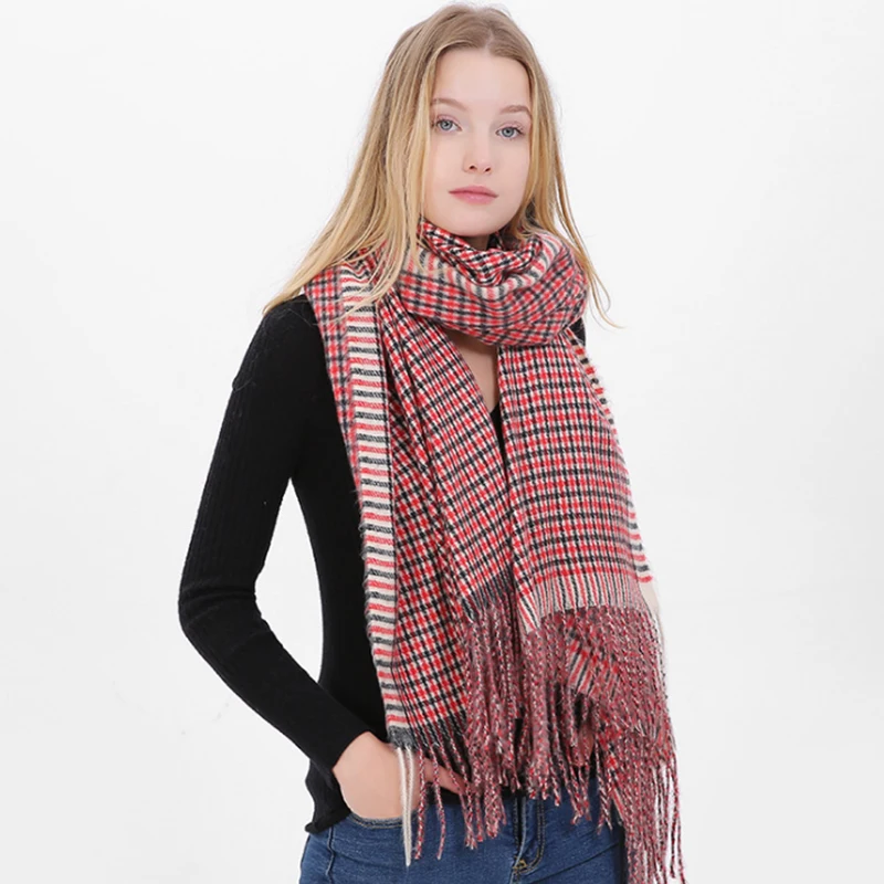 Модные белые и черные шерстяные шарфы в клетку мужские шарфы теплые зимние кашемировые Длинные мужские шарфы унисекс шали с кисточками