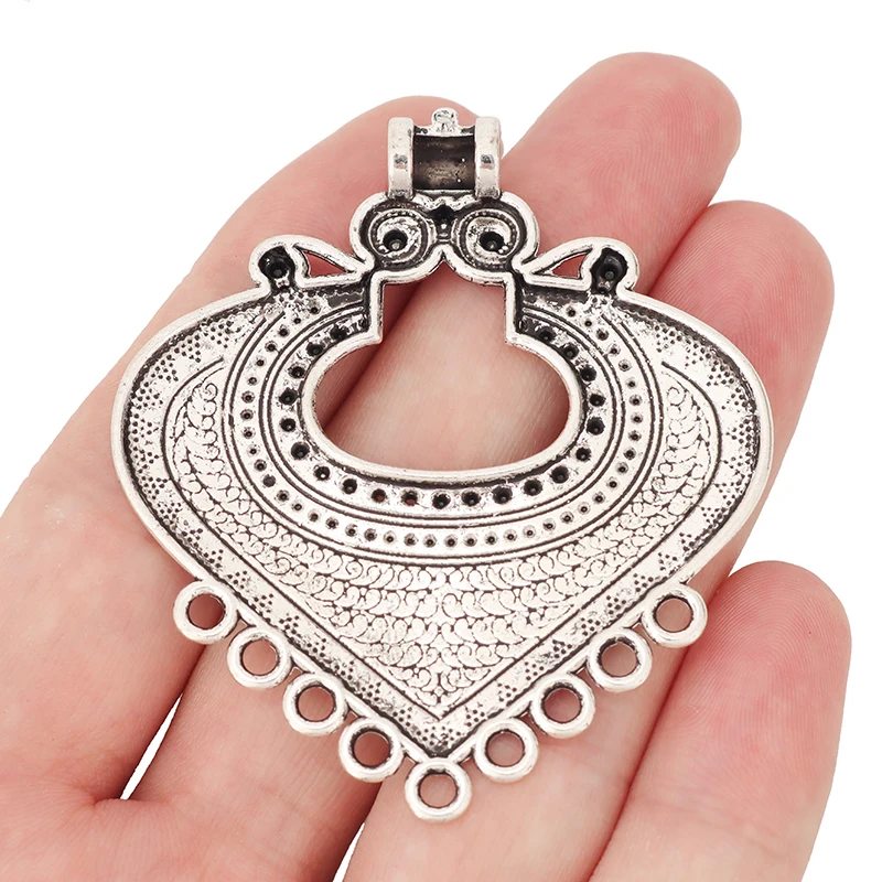 ZXZ 5 шт. антикварных Серебряный тон Мульти нити Разъем Подвески в форме сердца для ожерелье ювелирные изделия, украшения своими руками, 61x53mm