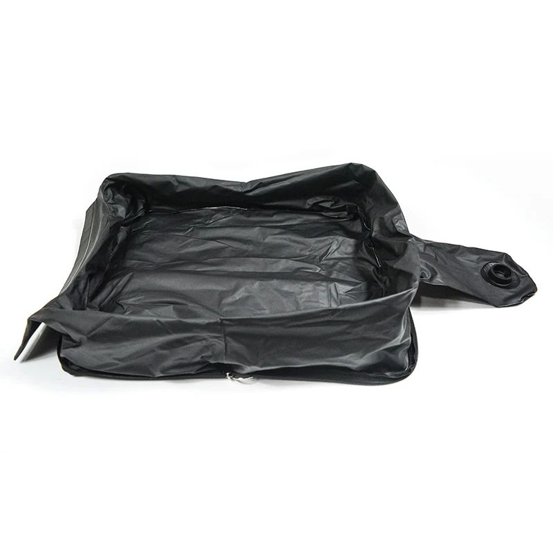Разложите сумку и выдавите воздух в подушку для ног, повторите дважды.