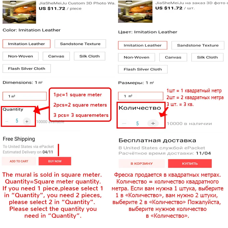 Если вам нужно 10 квадратных метров, пожалуйста, выберите количество 10 в заказе.