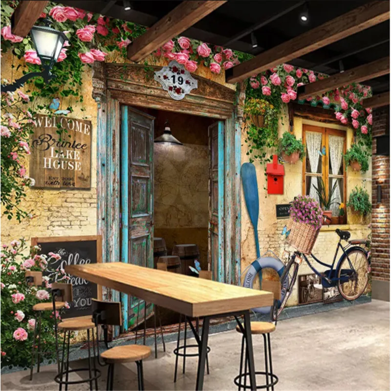 Персонализированные пользовательские ретро ностальгия ветряная промышленность перспектива письмо ресторан кафе бар КТВ велосипед кирпич шаблон обои