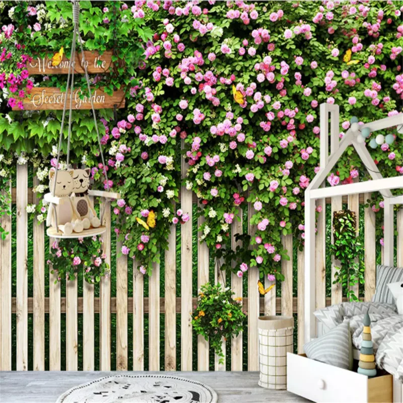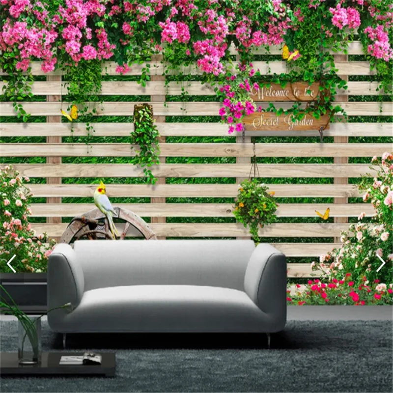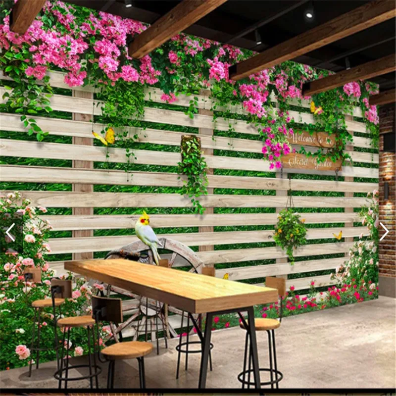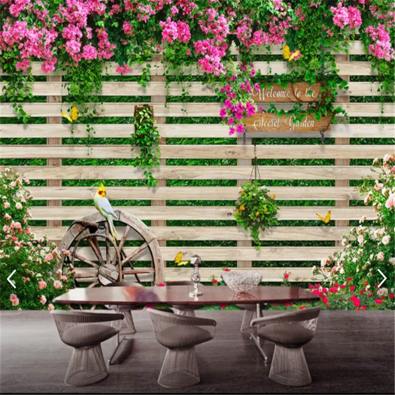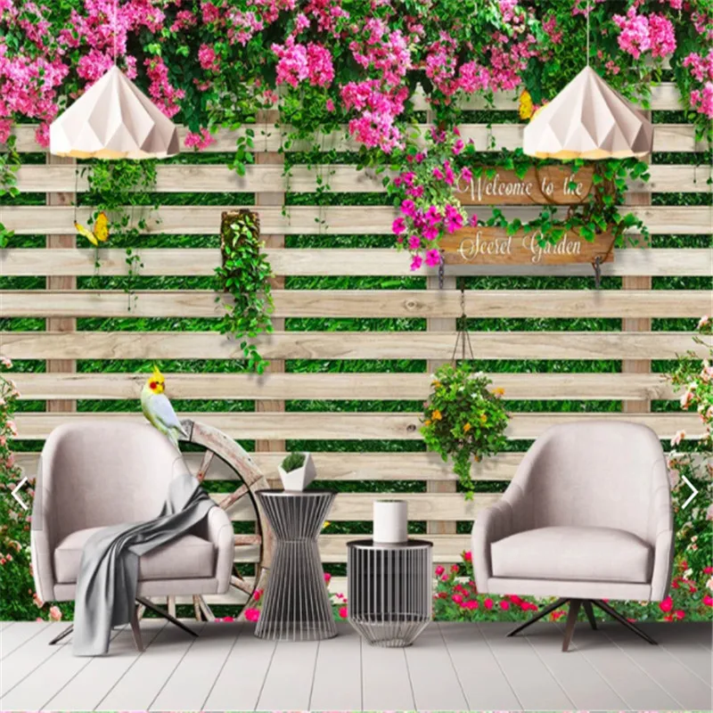 Фотообои 3d Средиземноморский парк планка забор розы фото обои кафе ресторан гостиная домашний декор papel де parede