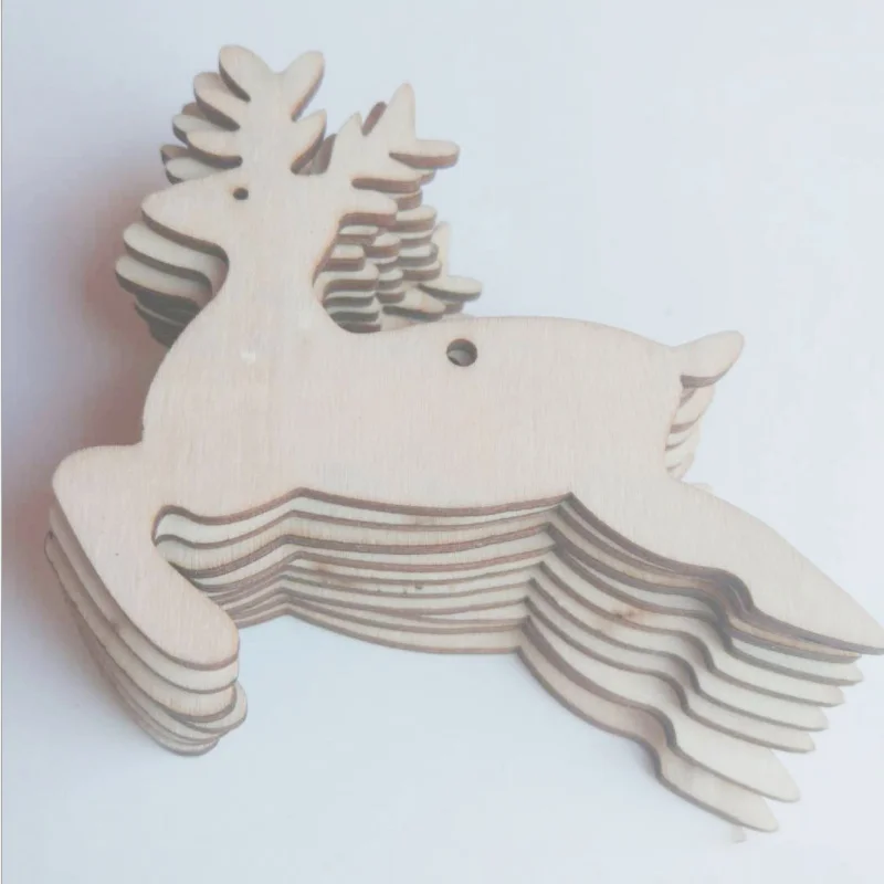 10PCS DIY Christmas Snowflakes&Deer&Tree Wooden Pendants Ornaments Christmas Party Decorations Xmas Tree Ornaments Kids Gifts
