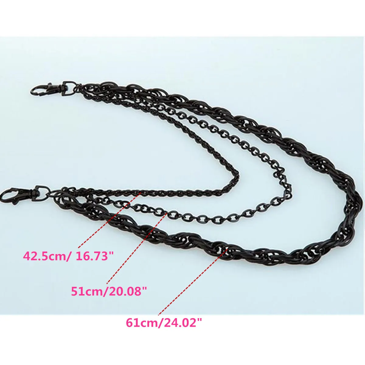 | Спецификация: Цвет: черный Материал: металл Длина первого слоя: 42,5 см/16,73 дюйма Ширина: 0,3 см/0,12 дюйма Длина второго слоя: 51 см/20,08 дюйма Ширина: 0,4 см/0,16 дюйма Длина третьего слоя: 61 см/24,02 дюйма Ширина: 0,9 см/0,35 дюйма [Преобразование: 1 см = 0,3937 дюйма, 1 дюйм = 2,54 см] Особенности: -Вы будете выглядеть более привлекательно! -Можно не только украсить вашу одежду, но и закрепить ключи или другие вещи. -Эта цепочка для ключей от кошелька, которую любят водители и байкеры, обеспечивает безопасность ценных вещей. В комплект входит: 1 x цепочка для кошелька Примечание: -Из-за различных партий продукции детали продукта могут немного отличаться. Если вы хотите узнать разницу, пожалуйста, покупайте внимательно. -Пожалуйста, учитывайте разницу в 1-3 см из-за ручного измерения. -Из-за различий в освещении и цветопередаче изображения могут не отражать фактический цвет изделия. Спасибо за понимание. |