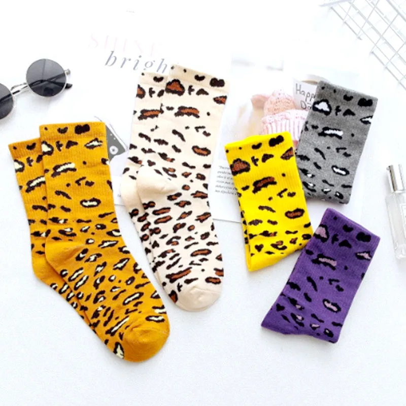 Winter And Autumn Fashion Leopard Ladies Socks Novelty Funny Sock Harajuku Trend Warm Cotton Casual Soft Spot Leopard cottons